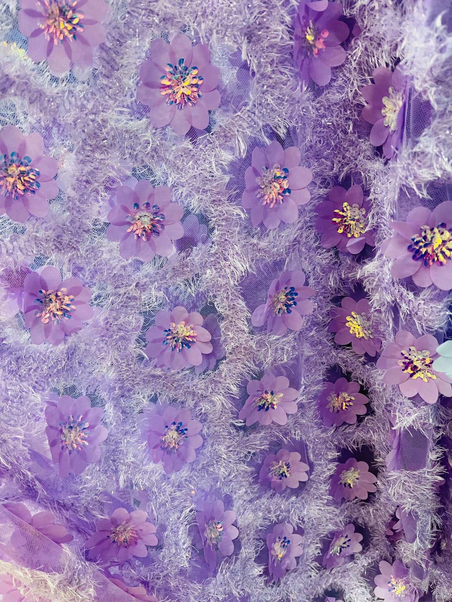 This is designer elegant 3D flower with eyelash lace made in Italy one of the best fabric for prom dresses mother of bride gown and much more
