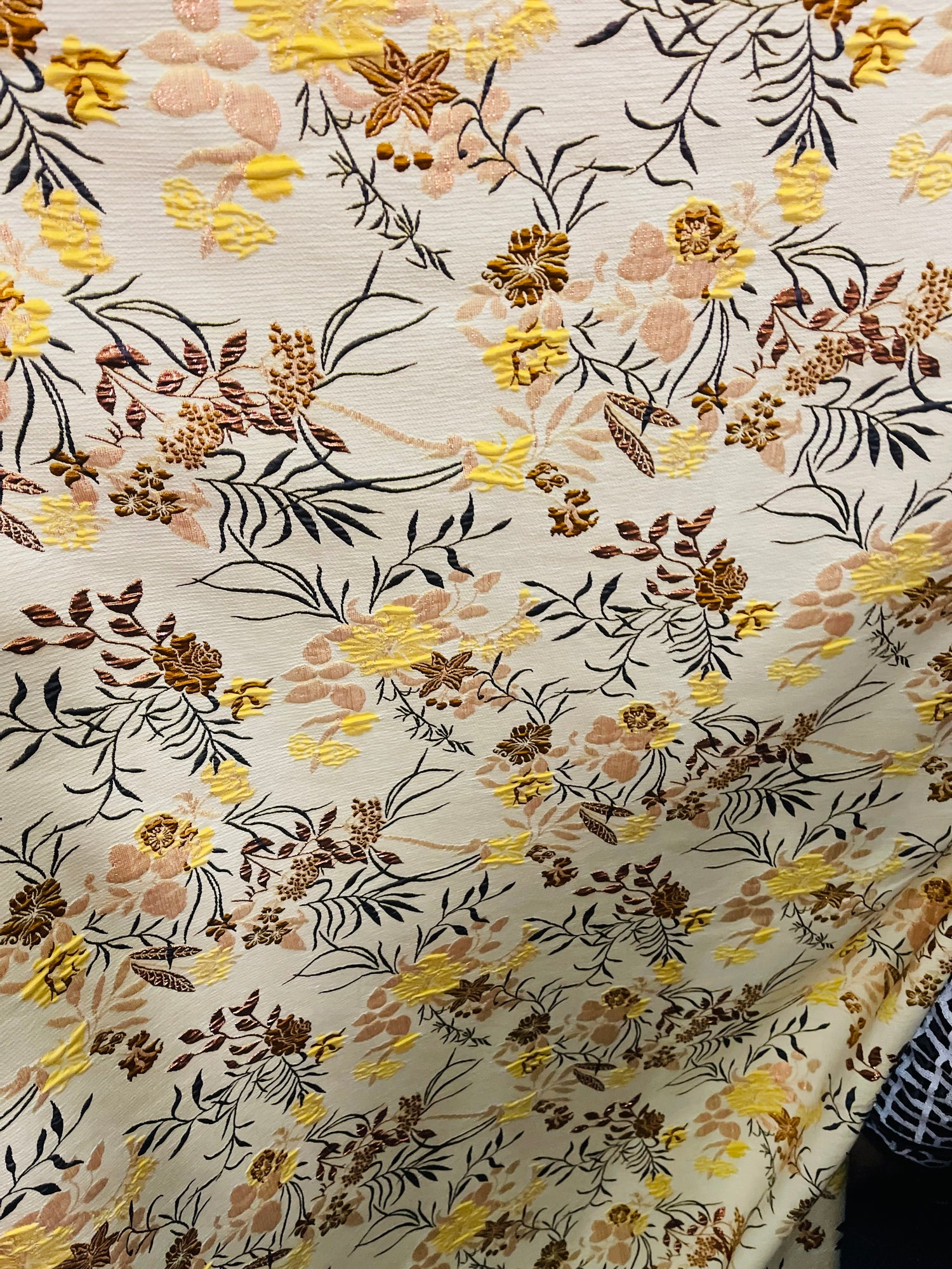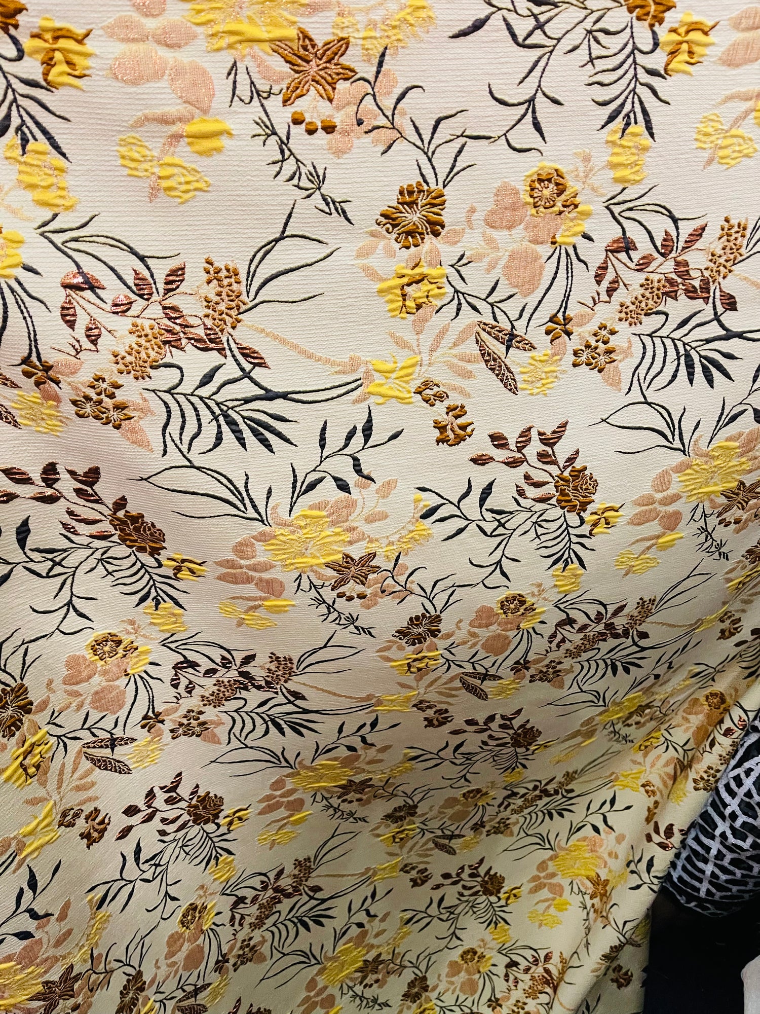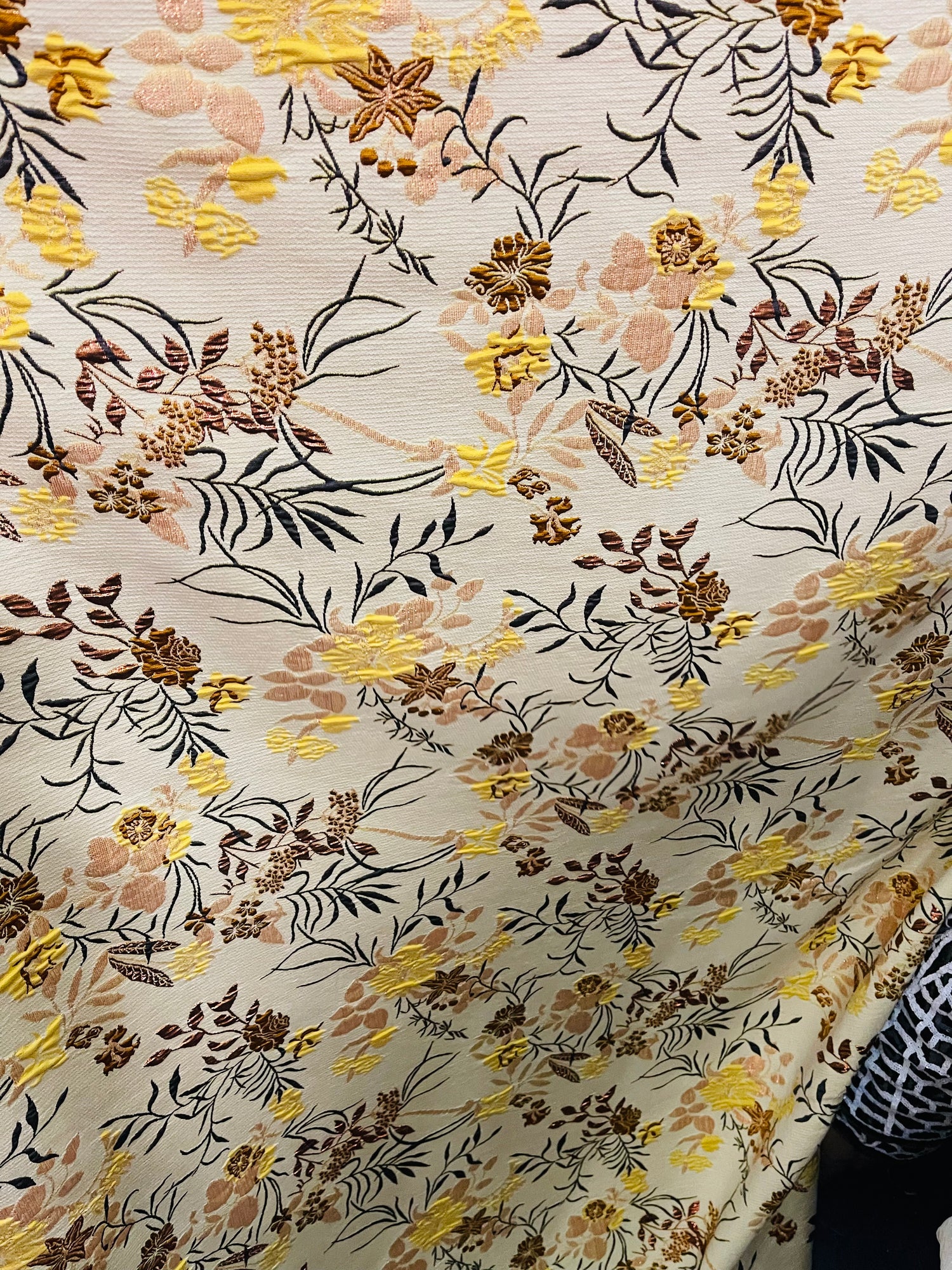 this is luxury mulberry elegant mikado brocked dabble face champagne with copper flowers made in Italy
