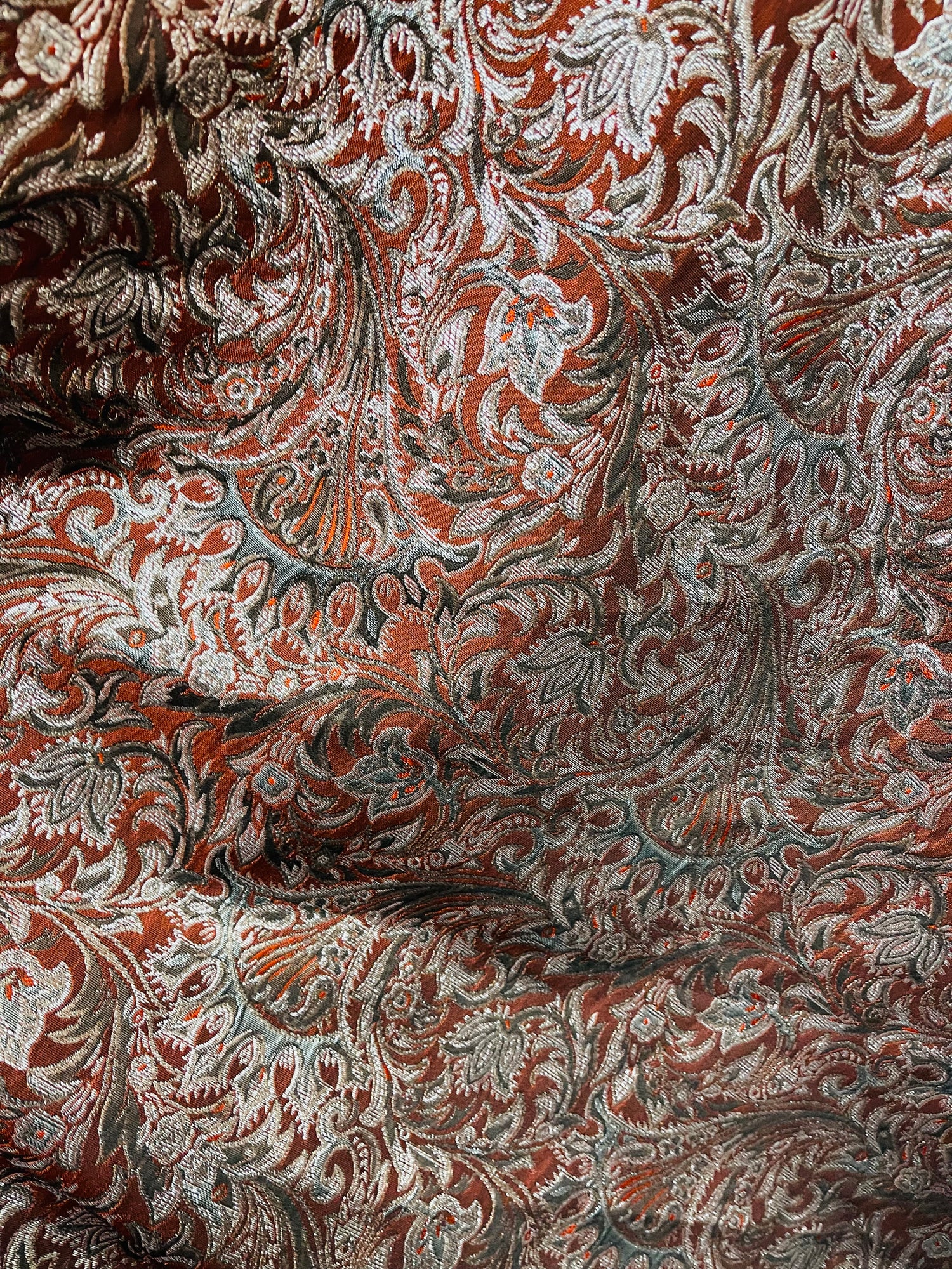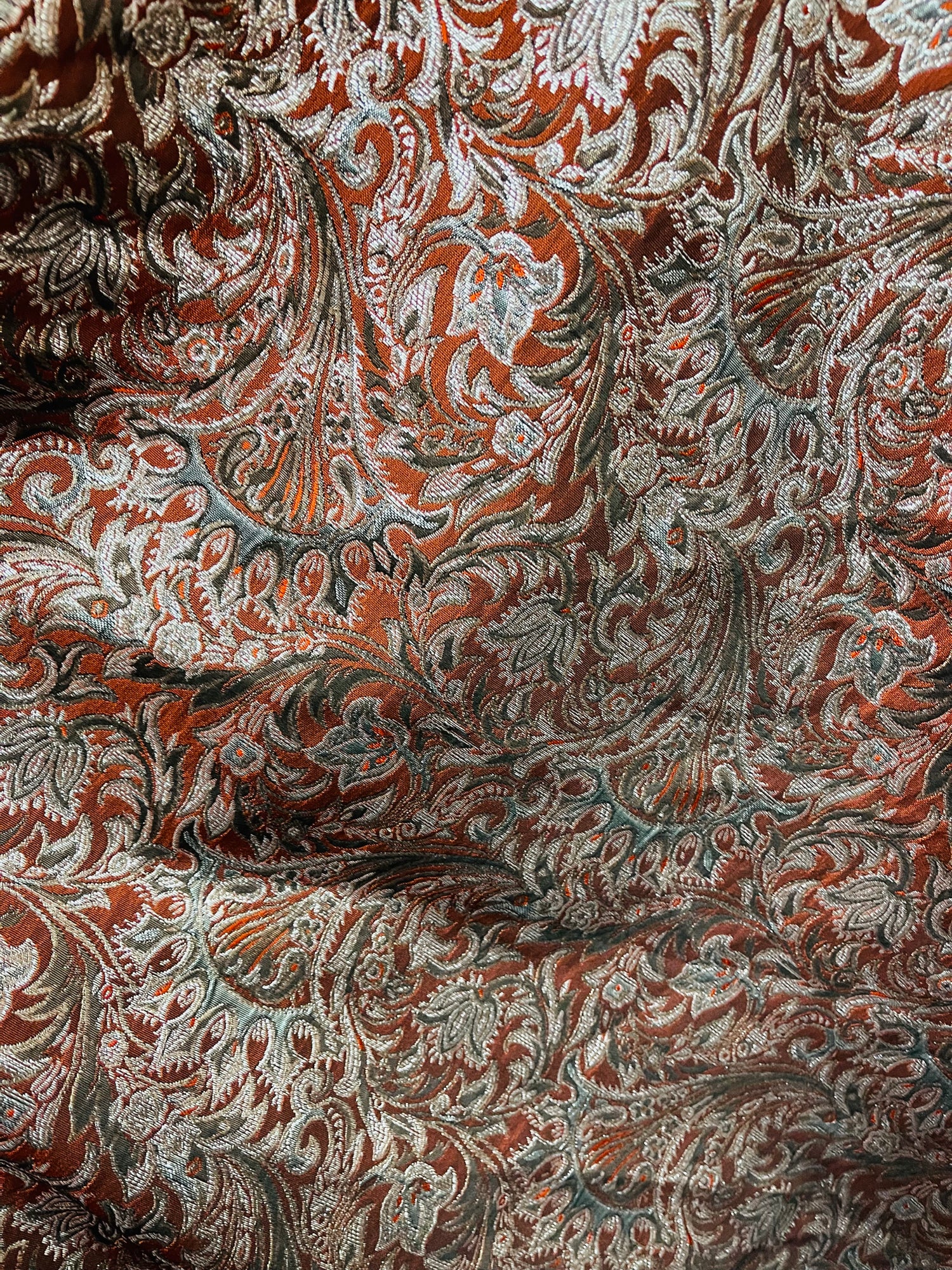this is luxury mulberry elegant mikado brocade rust and silver made in Italy