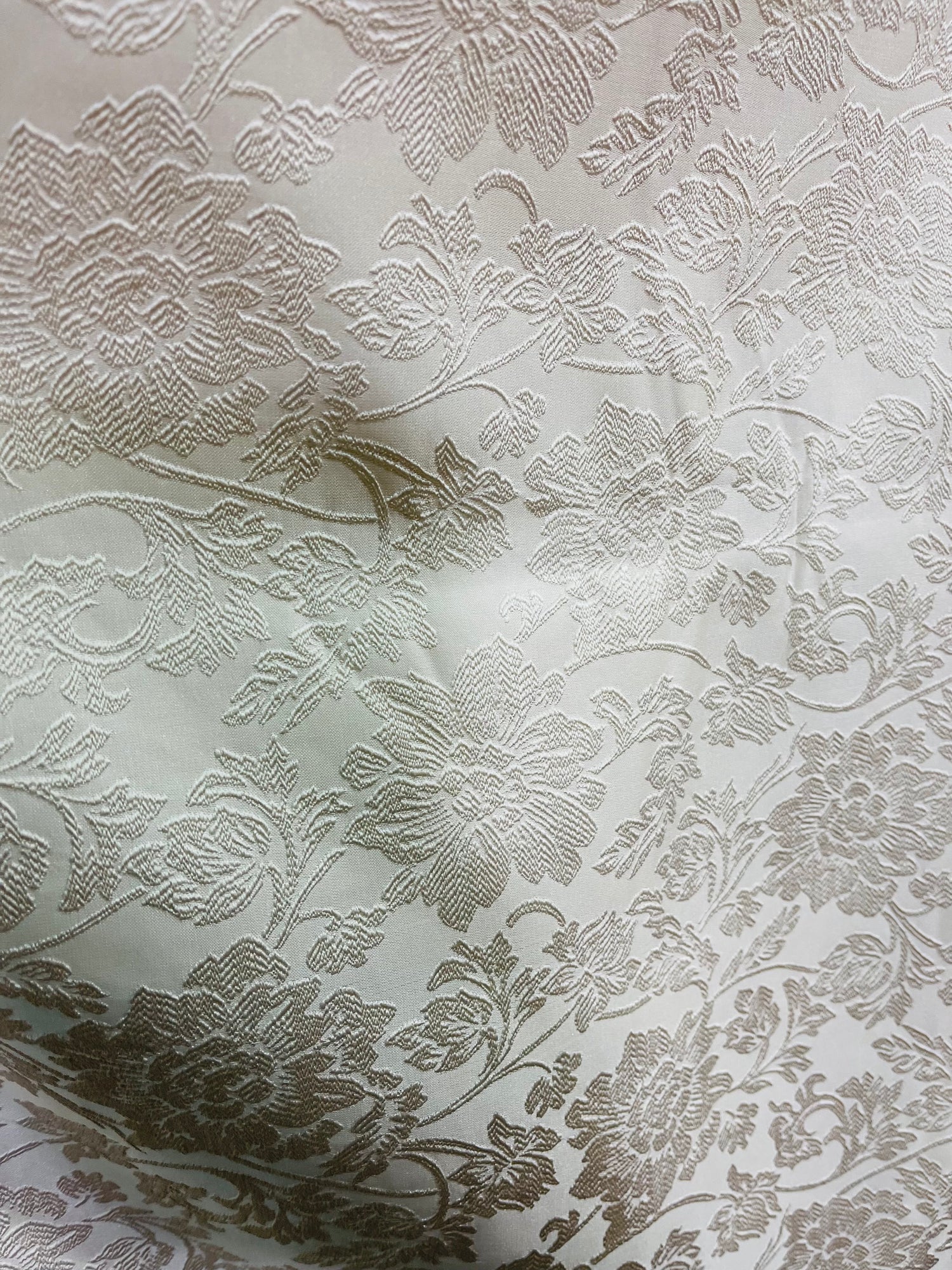 this is luxury mulberry elegant mikado brocade cream with champagne flowers made in Italy