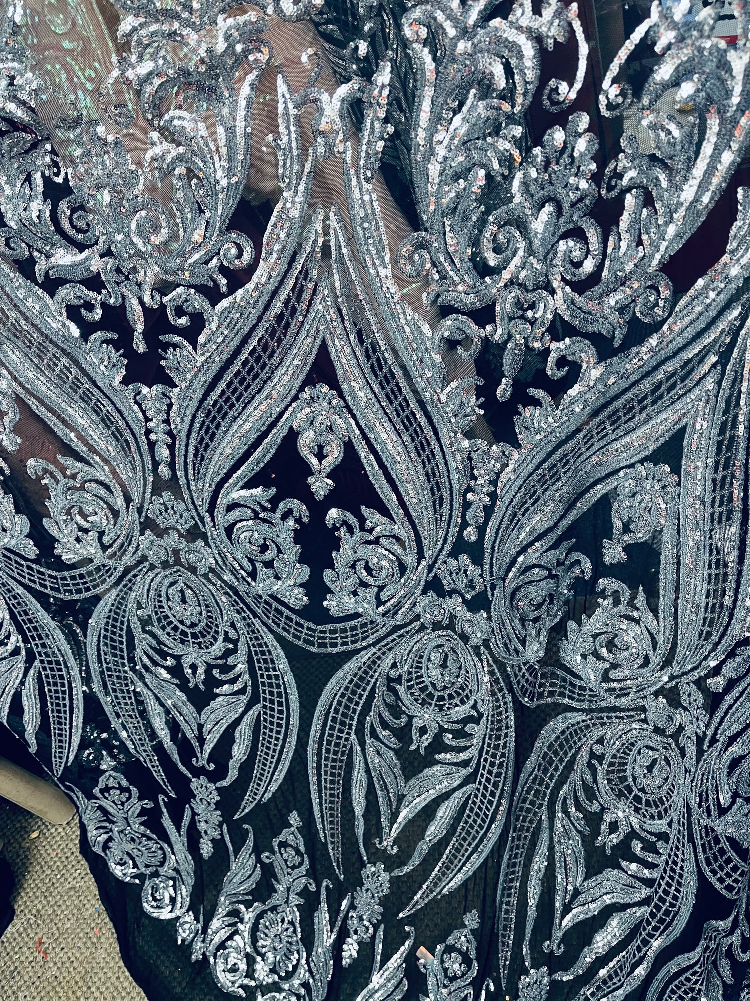 This is luxury mulberry designer prom 4way stretch sequins lace made in France