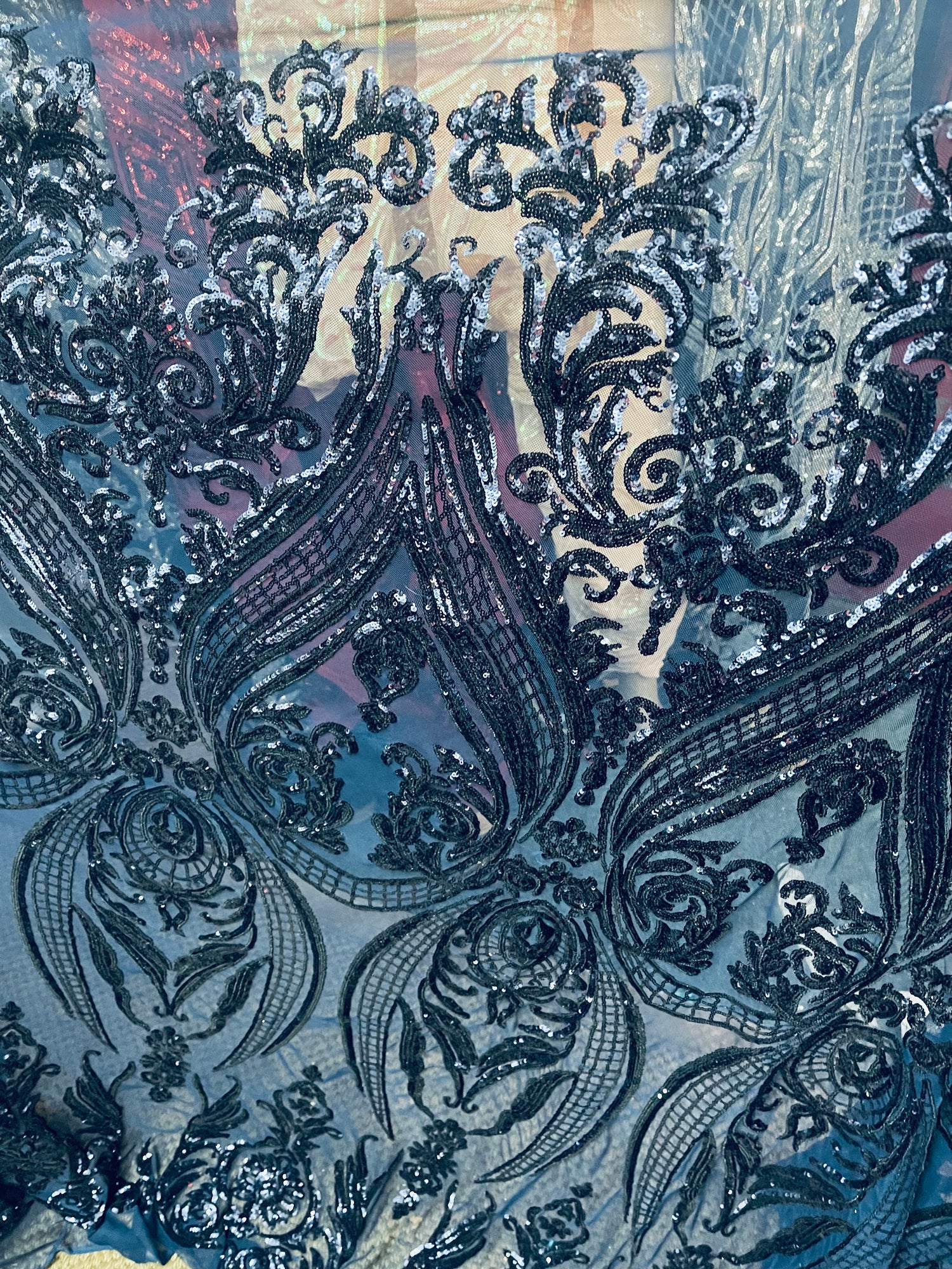 This is luxury mulberry designer prom 4way stretch sequins lace made in France