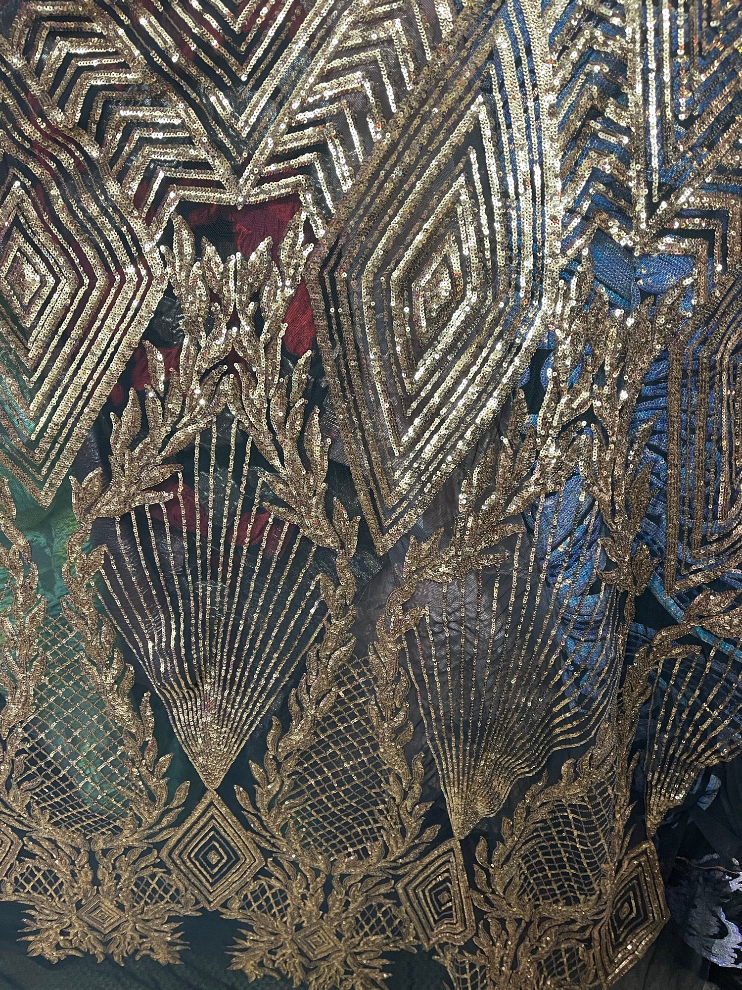 This is luxury mulberry designer prom 4way stretch sequins lace made in France