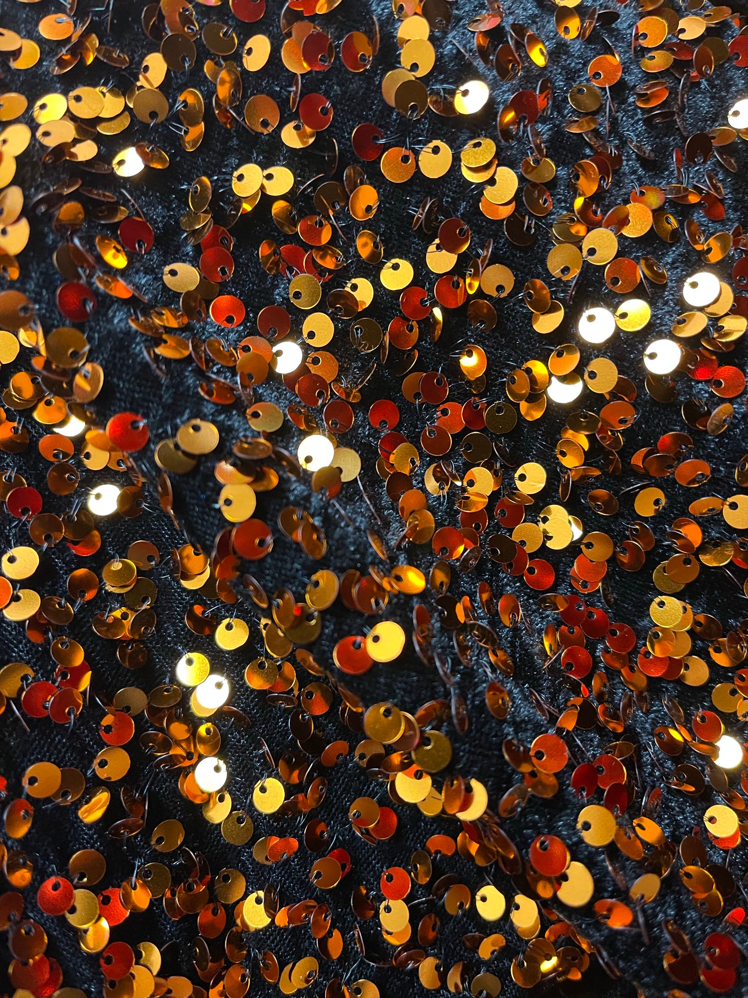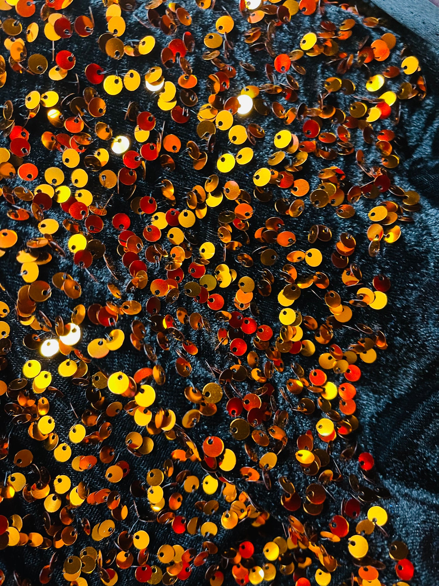 Color: Black Velvet with orange sequins