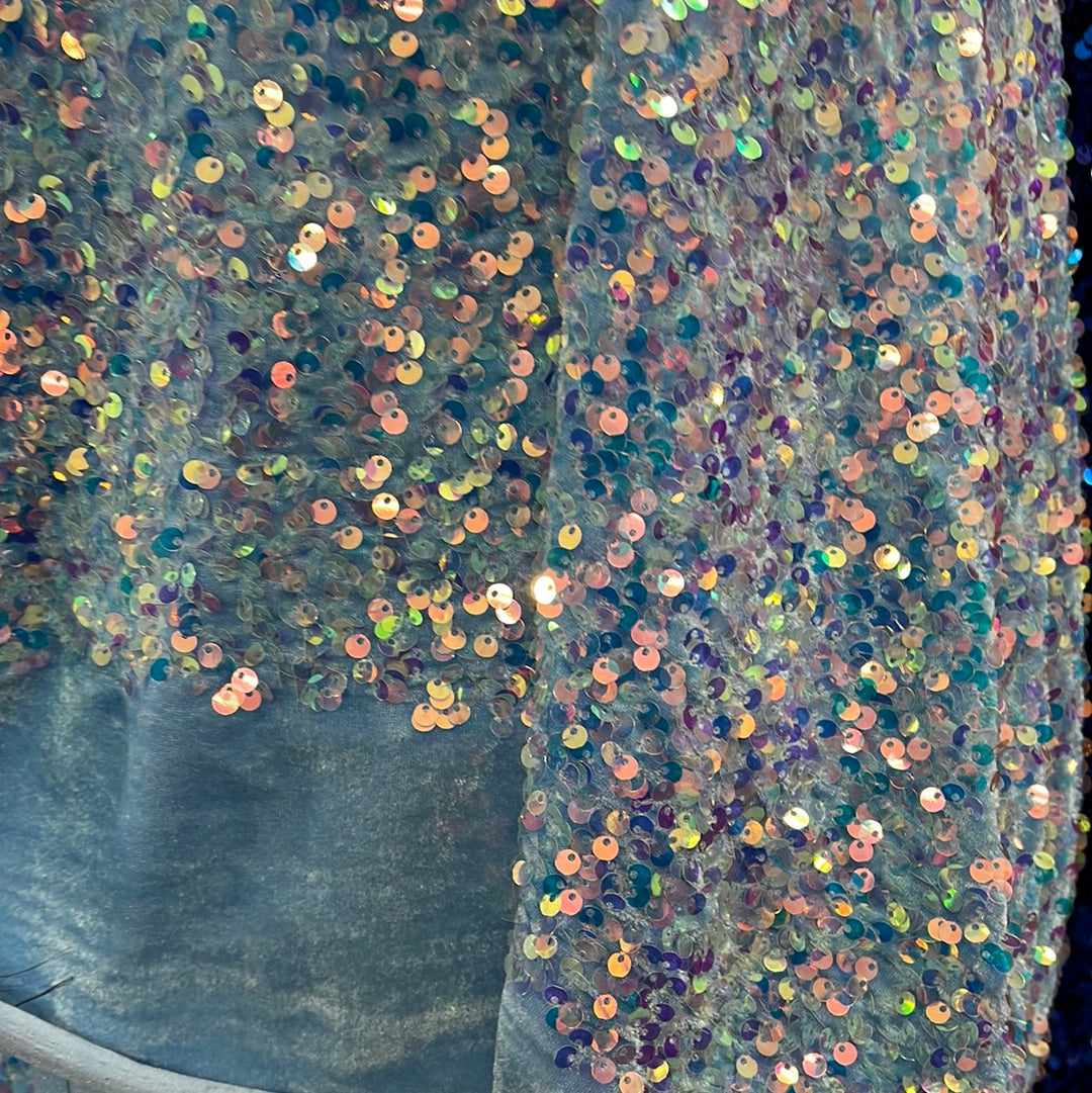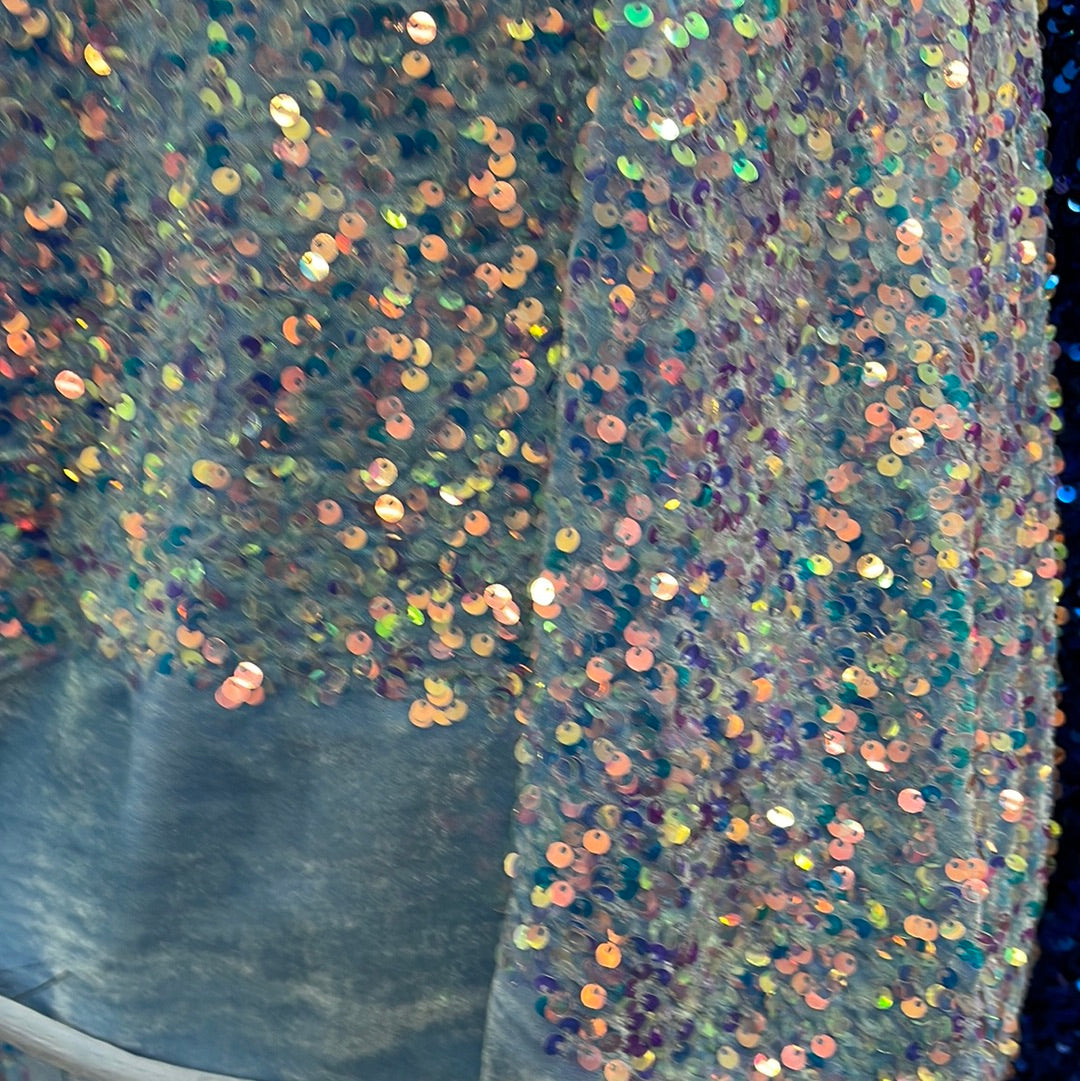 This is luxury mulberry designer prom 4way stretch iridescent sequins velvet made in France