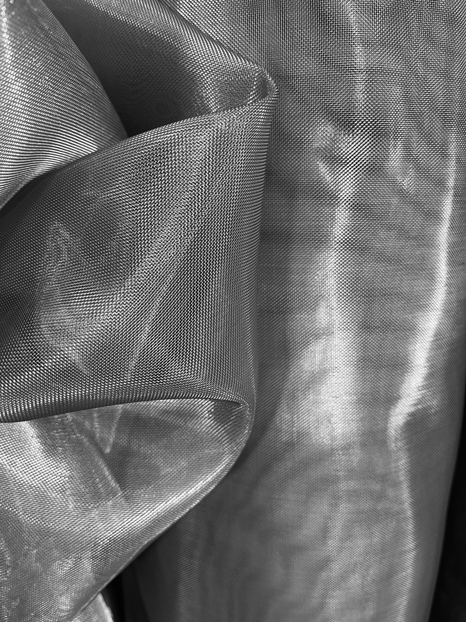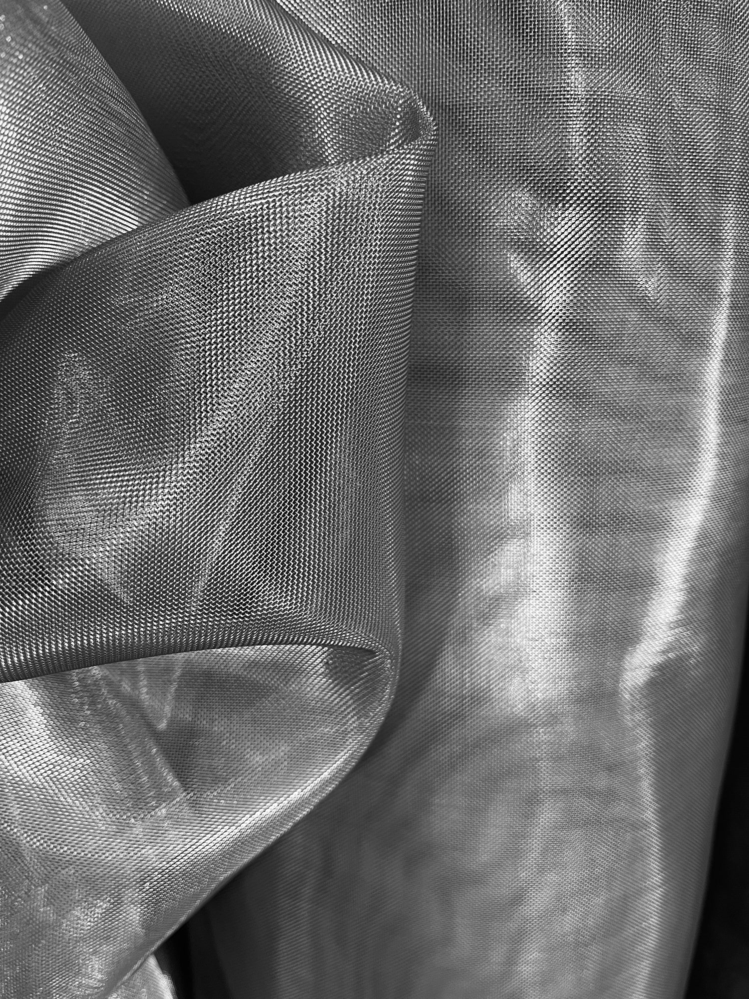 This is a luxury mulberry elegant designer metallic organdy Horse hair made in Italy.