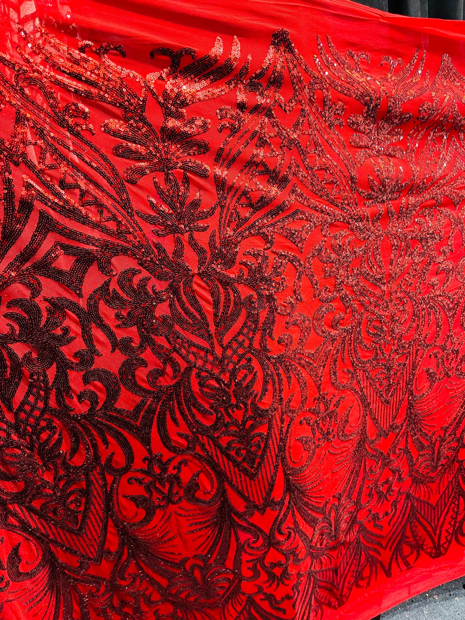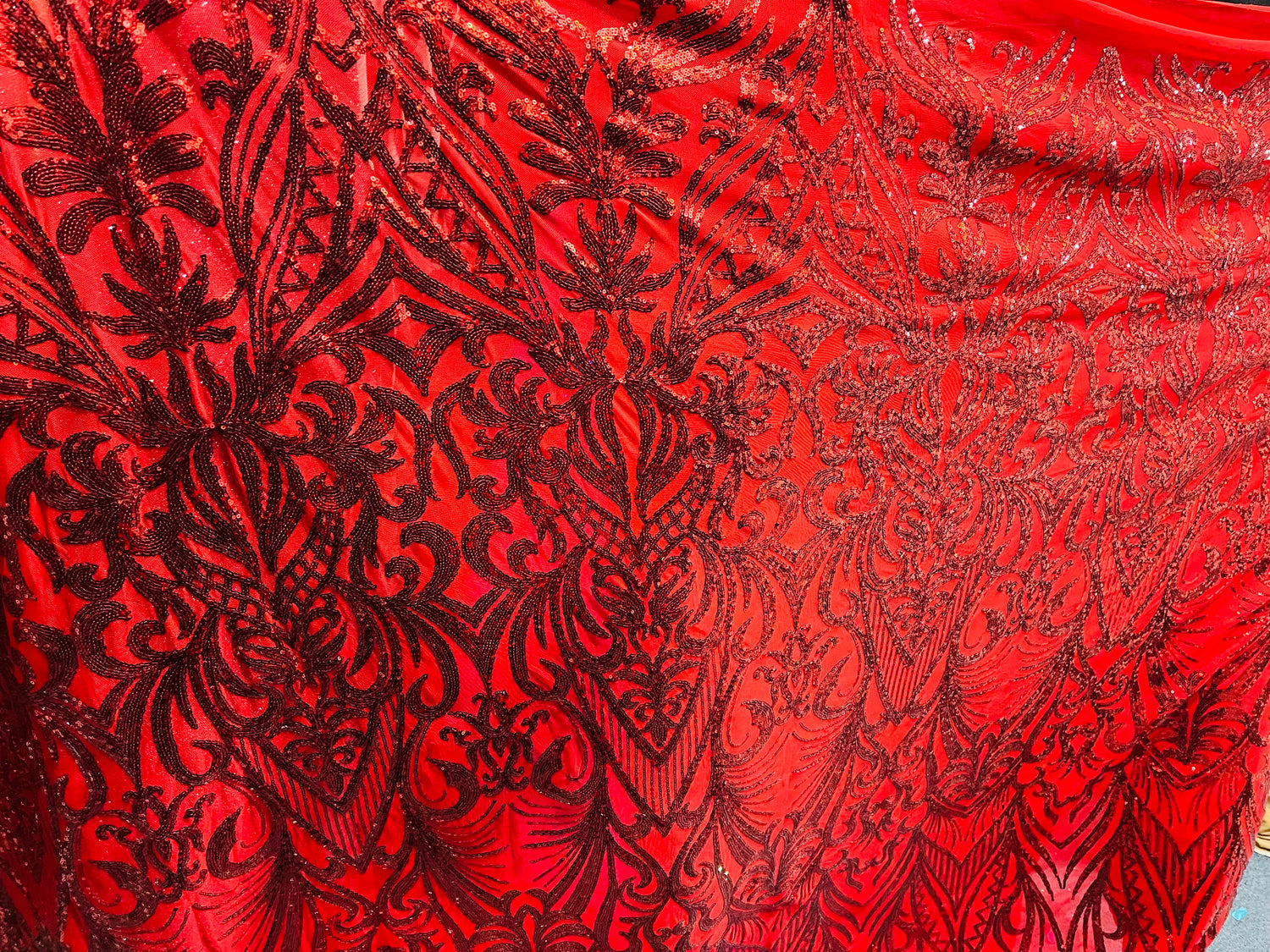 Designer Red 4 WAY LACE sequence for prom and wedding