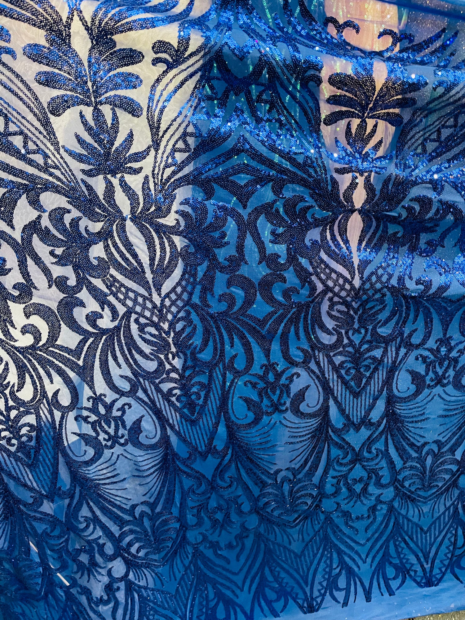 Designer Royal blue 4 WAY LACE sequence for prom and wedding