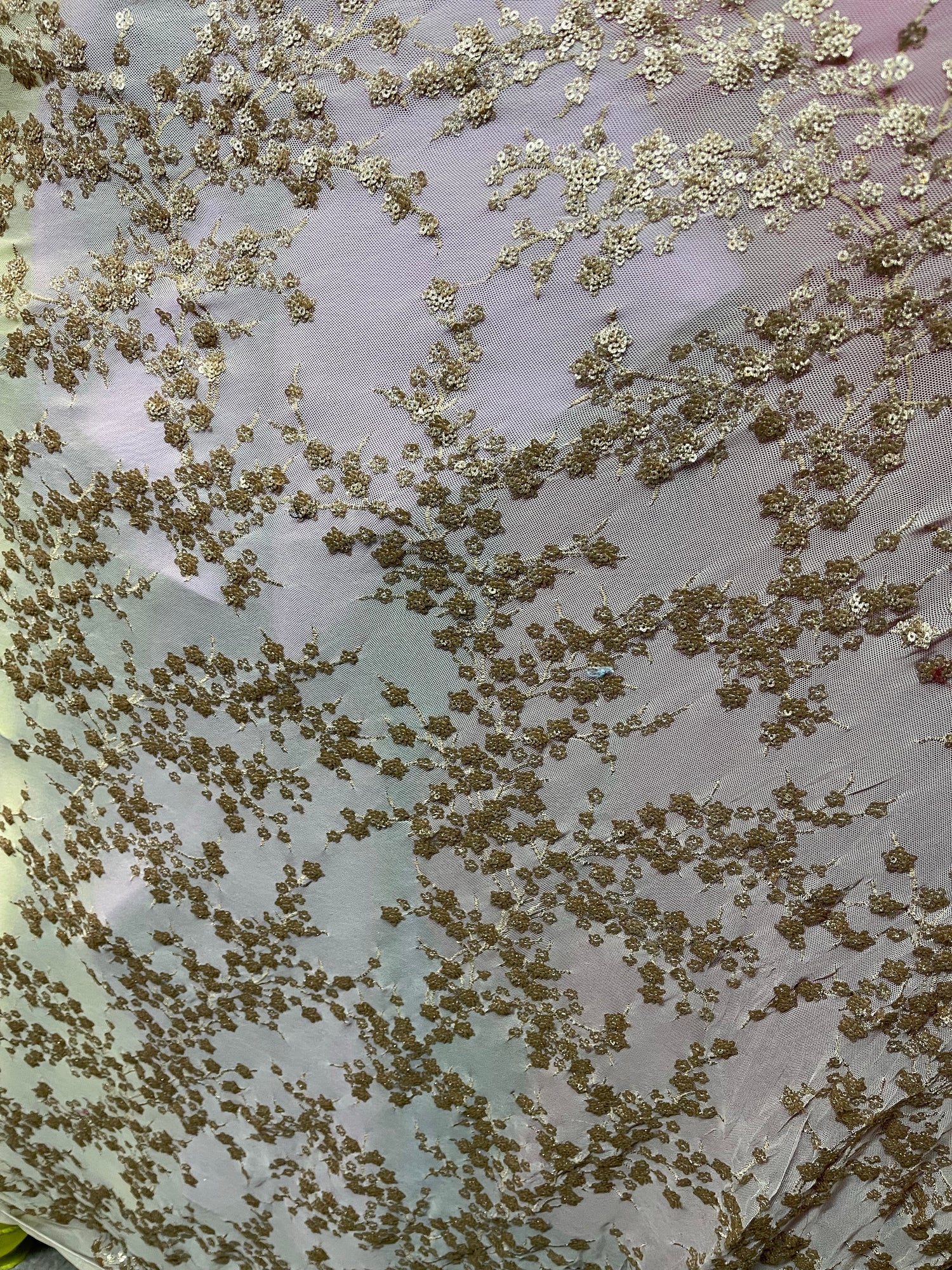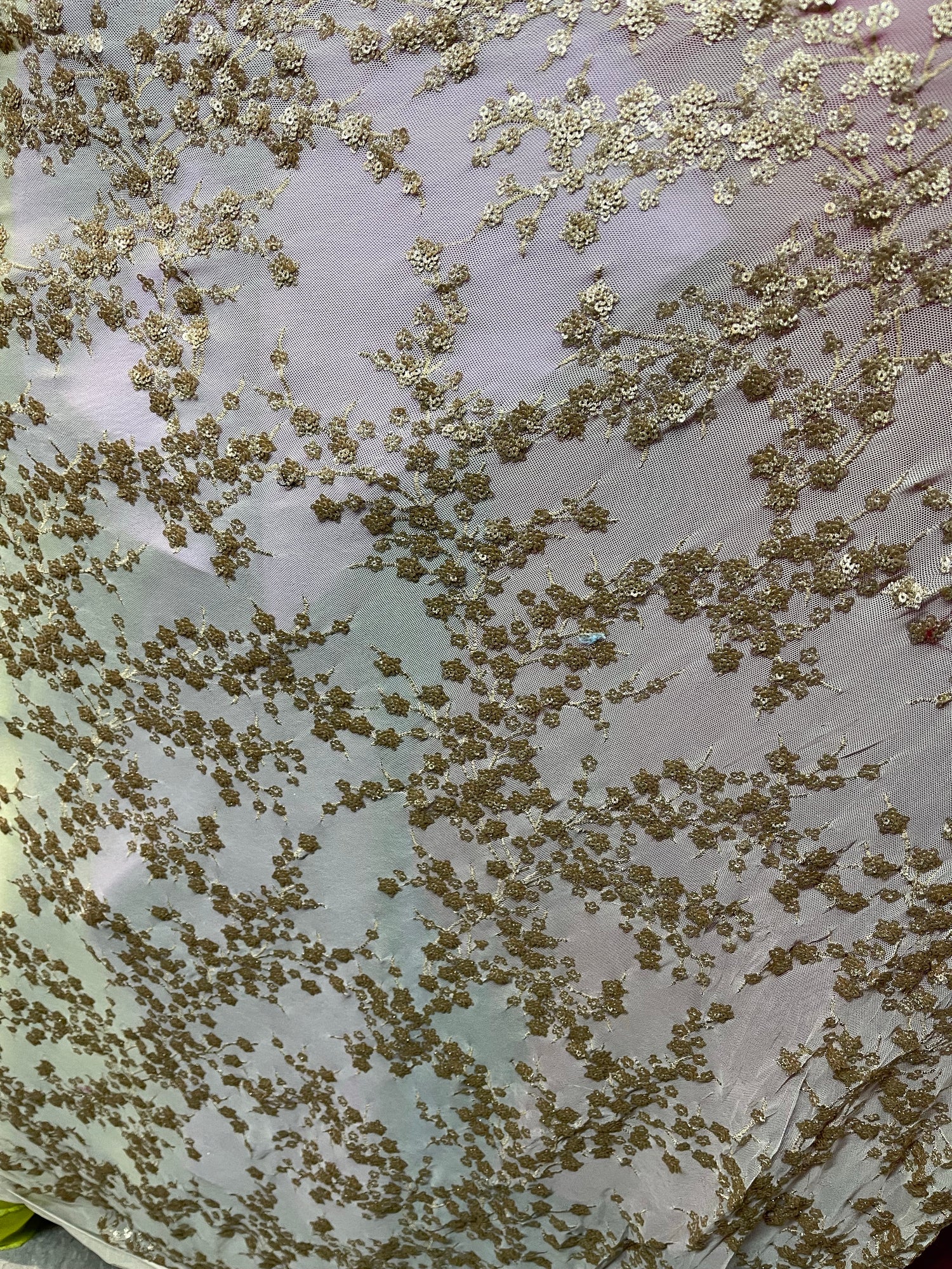 FABRICS; gold 4 WAY LACE sequence