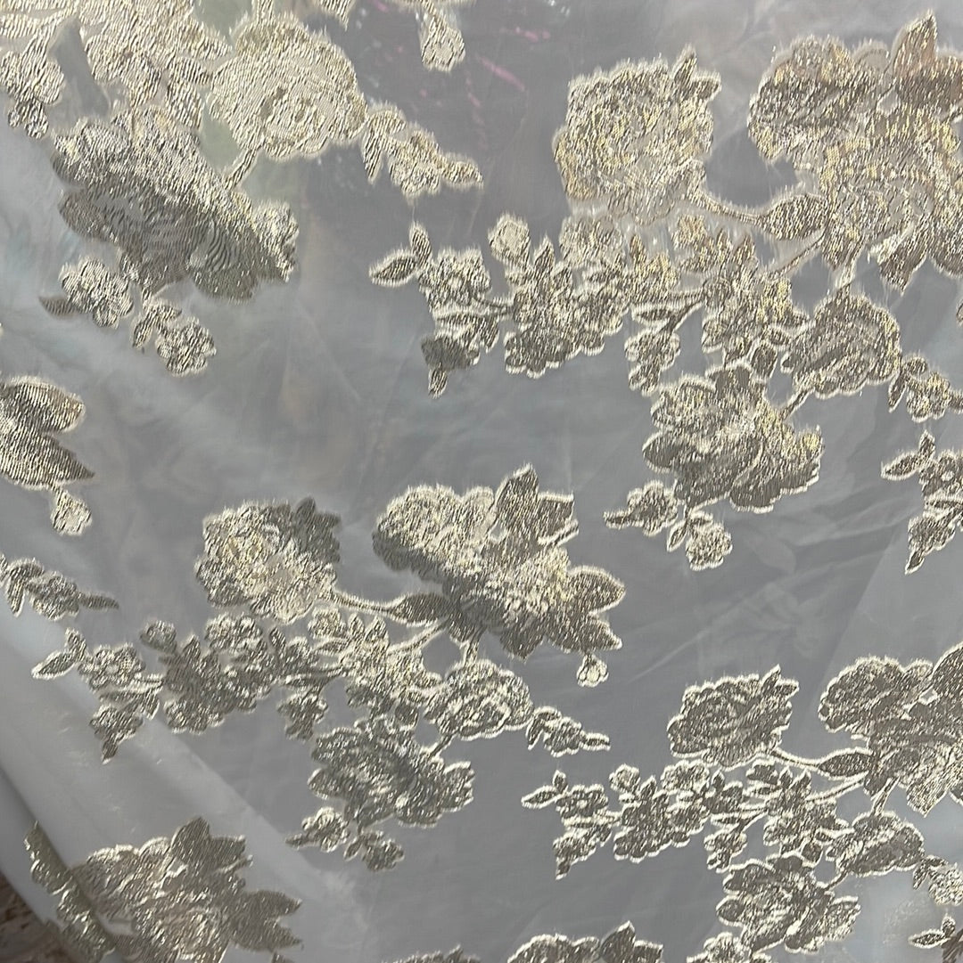 This is designer metallic chiffon made in Italy one of the best fabric for prom dresses mother of bride gown and much more