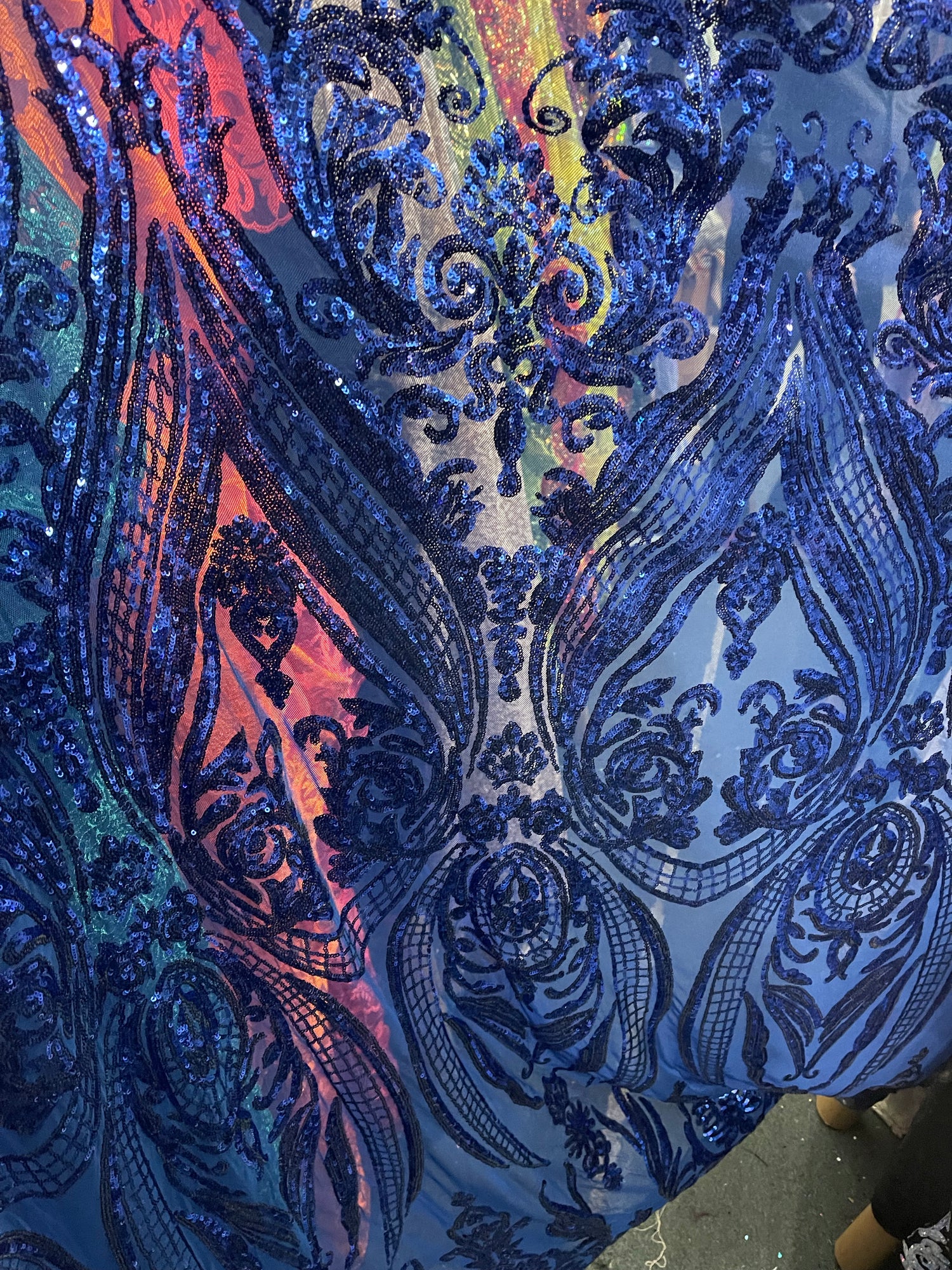 Royal blue 4 way sequence lace great fabric for prom and wedding dress and much more